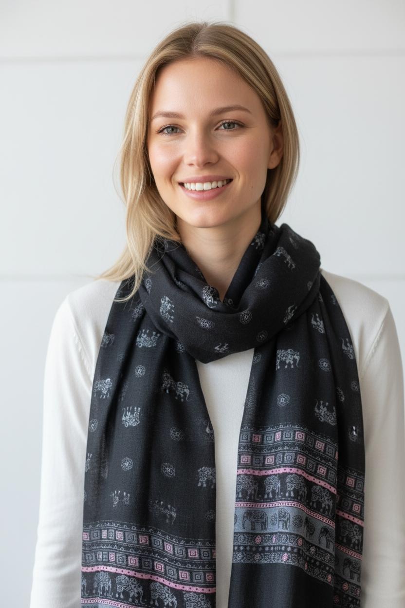 Ideal for draping over the shoulders, wrapping around the neck, or using as a lightweight travel wrap.
