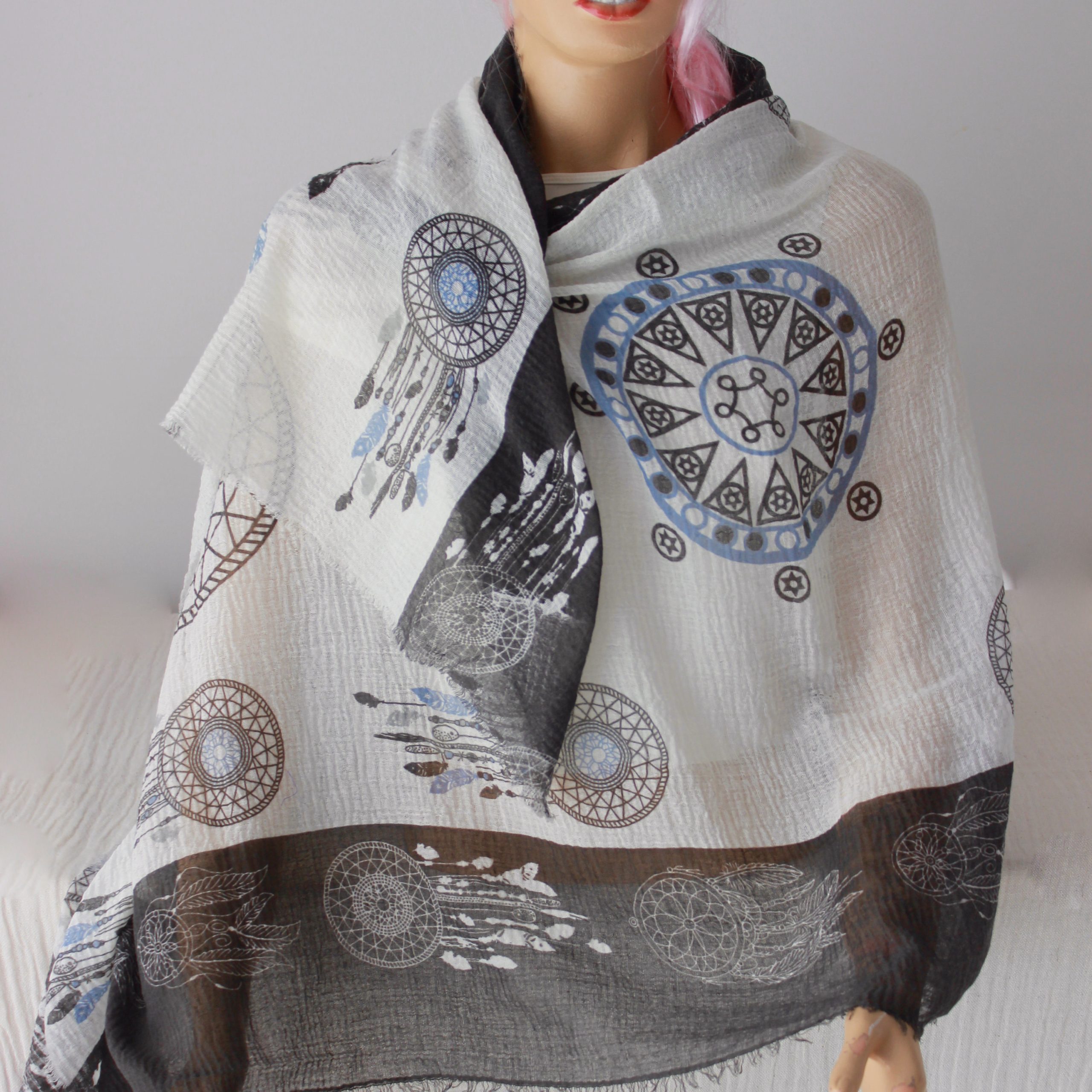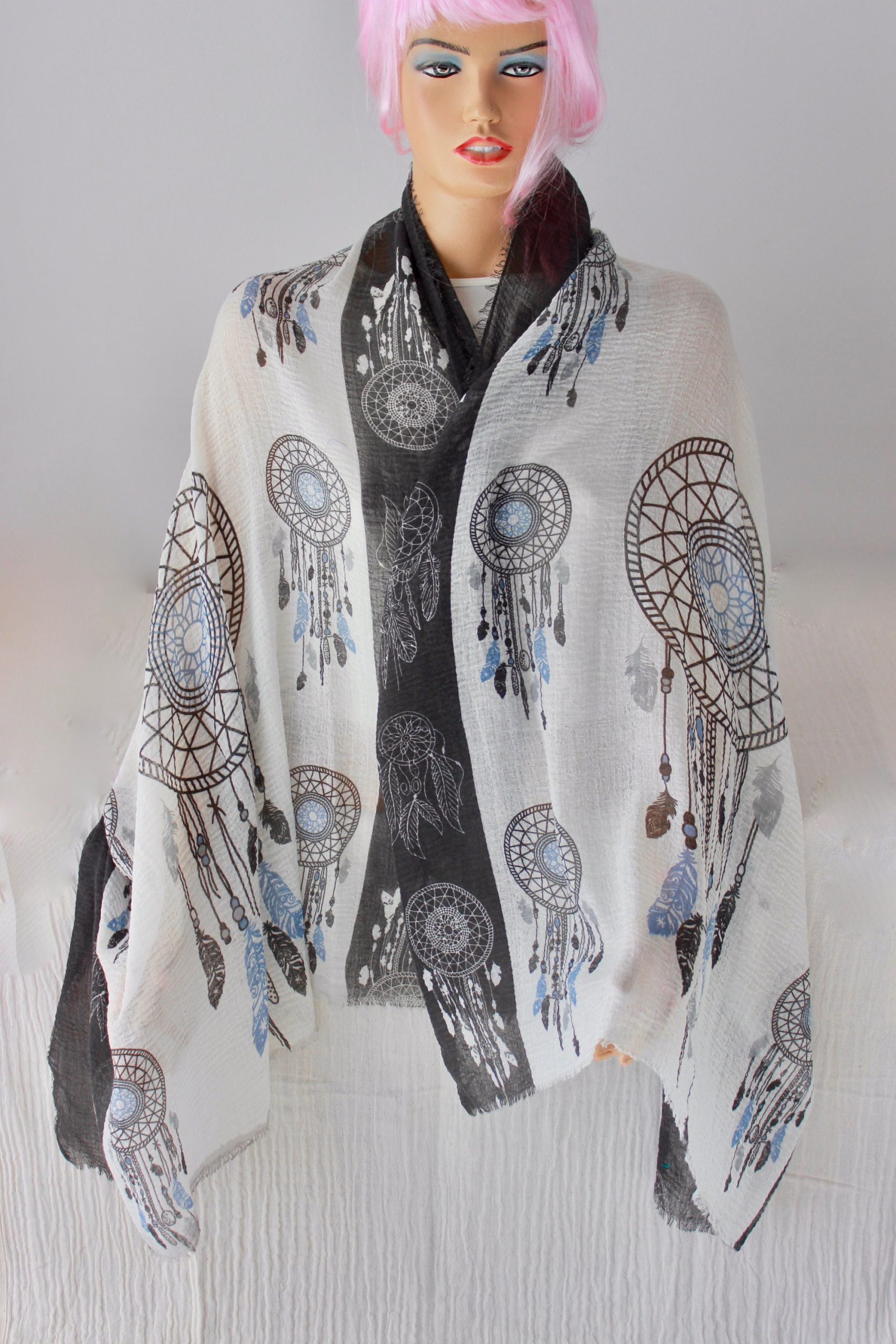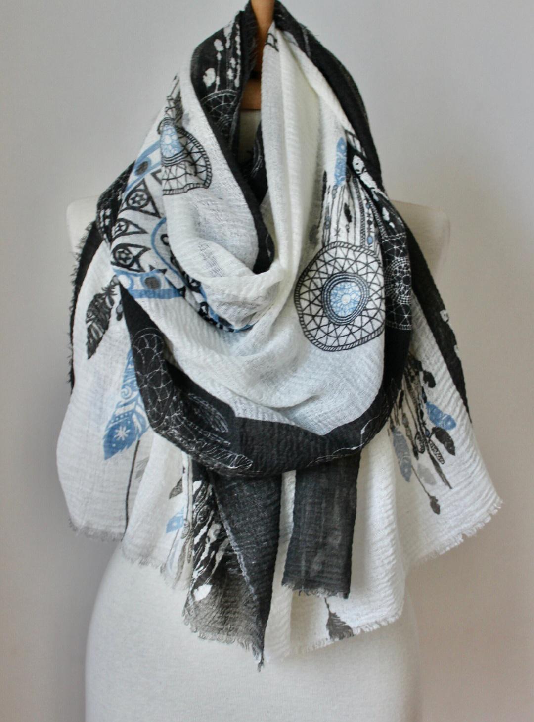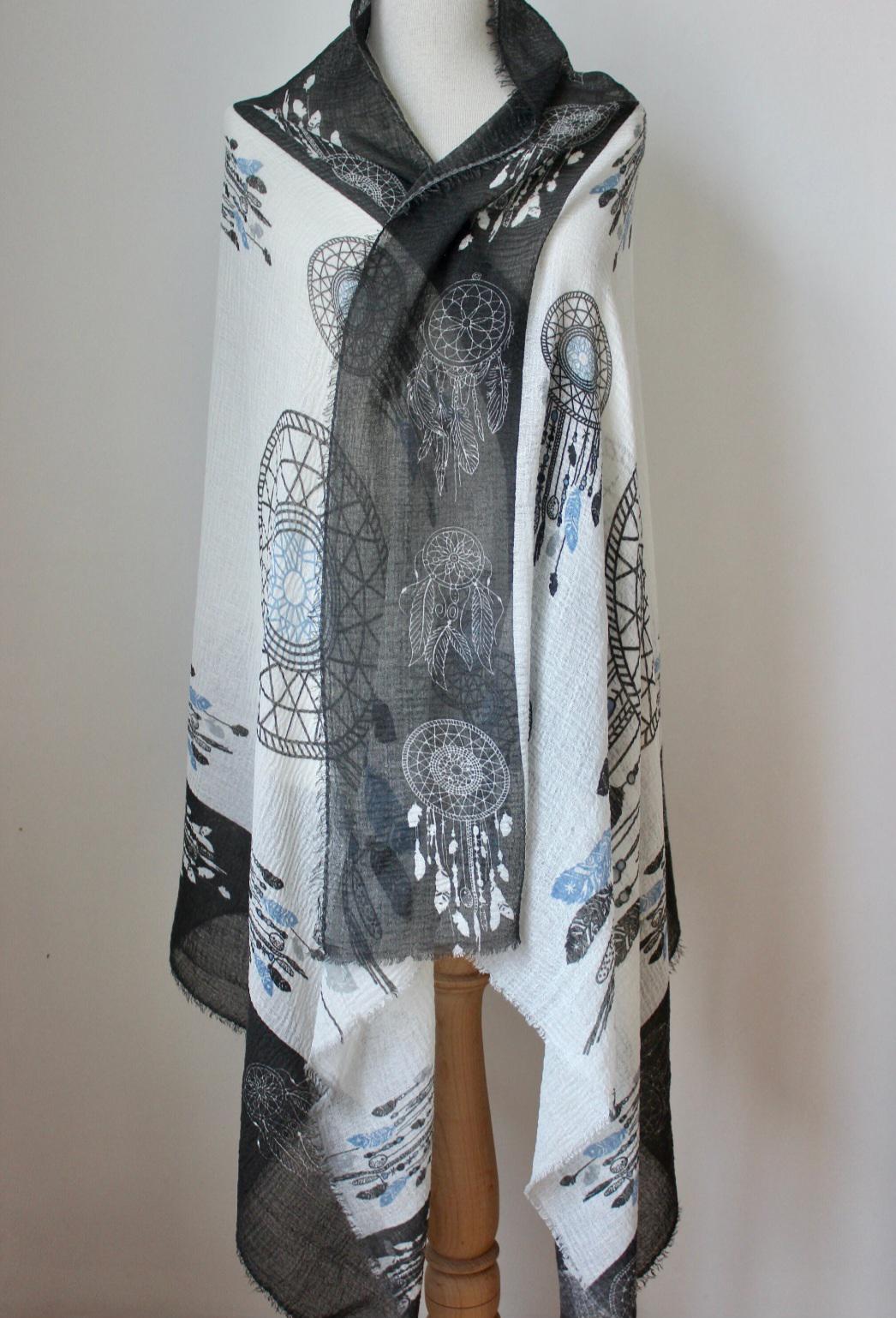 Be the first to review “Black White Dreamcatcher Print Shawl Wrap”