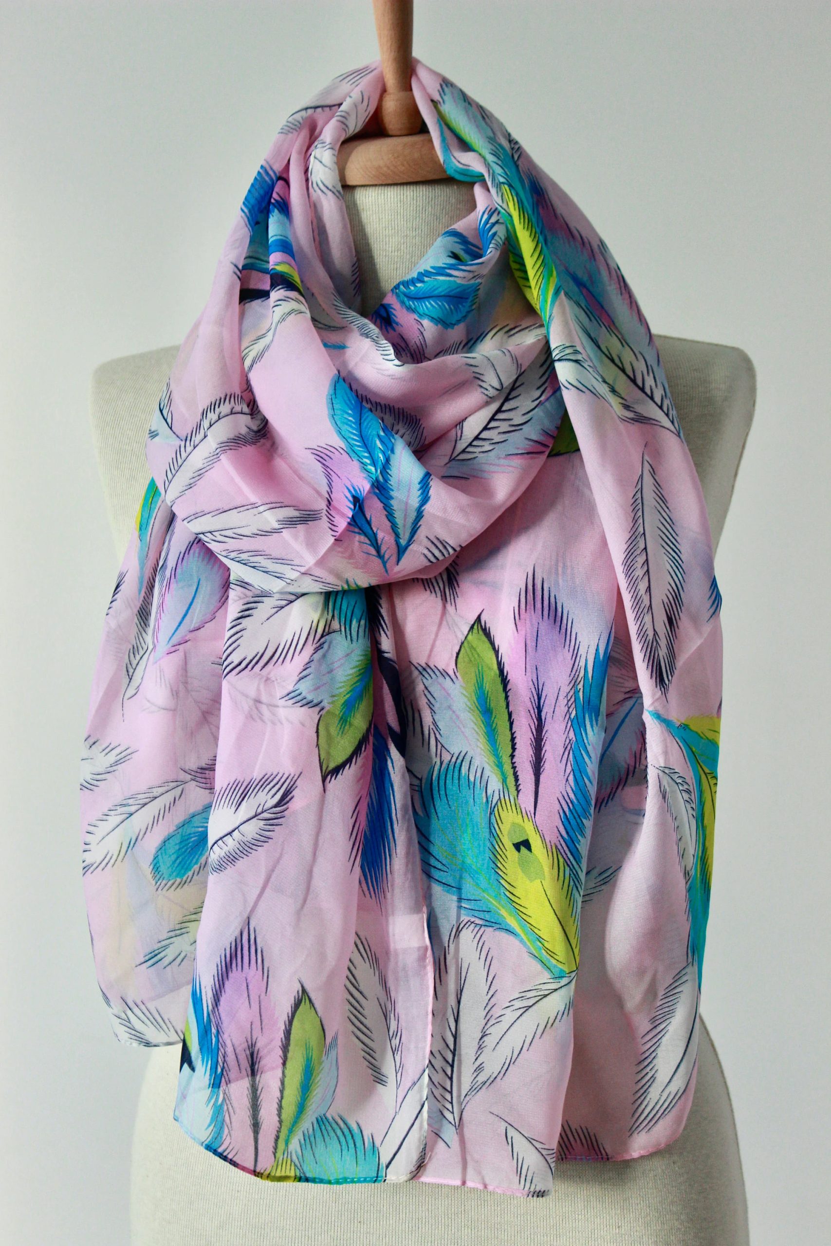 Be the first to review “Pink peacock feather print shawl”